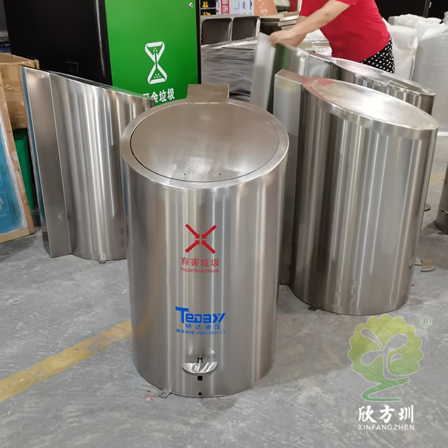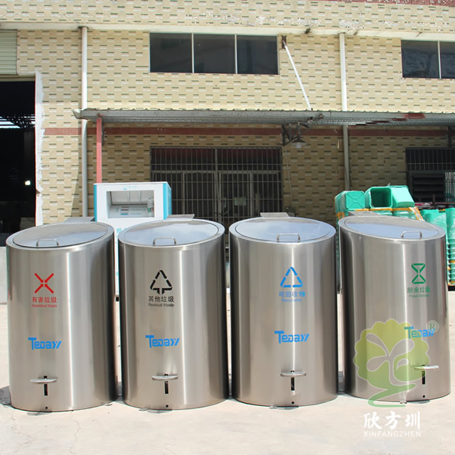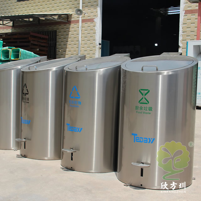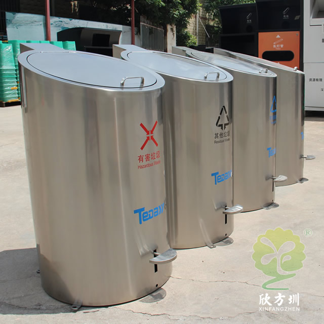 升降地埋式不銹鋼分類垃圾桶頂部采用了圓柱形的不銹鋼腳踏式垃圾桶制作而成,產品型號為:C726,尺寸規格:550*590*990mm,每個不銹鋼垃圾桶可以放著一個1100升的大號的塑料垃圾桶,收集點位于地下2.5米深處,有一些可以放著5個或者4個圓柱形分類垃圾桶看小區物業的需求,有些地方會配置垃圾亭擋雨棚,強力的壓縮機升降設備可以采用開關方便的控制地下的垃圾桶,讓它輕輕松松降上來,一拉塑料垃圾桶上垃圾車掛車方便環衛工人開車過來清理,這款垃圾桶上過很多央視新聞節目,升降式垃圾桶的優勢可以良好的釋放地面空間節省地面上的空間,現在很多城市的小區、城中村、學校工業區等場景都在試應用這款桶。