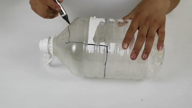 ? ? 那么今天分類垃圾桶網就用一個垃圾桶小發明,輕松解決你廚房里所有的難題,首先今天用到的道具非常簡單,只需要我們吃油剩下的油桶就可以,我們在油桶上先標記一下