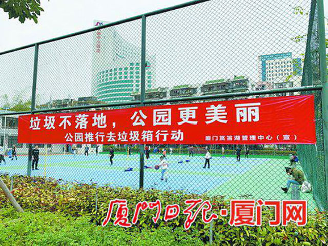 近日,廈門市南湖公園、松柏公園、江頭公園將試行“公園去垃圾箱行動”——逐步減少公園垃圾箱的數量,以此鼓勵市民游園時不產生垃圾或自行帶走垃圾,培養公眾的文明習慣。記者走訪了這些公園,了解“撤桶行動”的進展情況,并聽取市民建議。