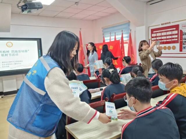 建設社區新時代文明實踐站聯合伍家區英杰學校學生,開展垃圾分類活動。家長和學生志愿者們撿拾散落的白漂垃圾和煙頭等雜物,為文明典范城市創建貢獻一份力量。