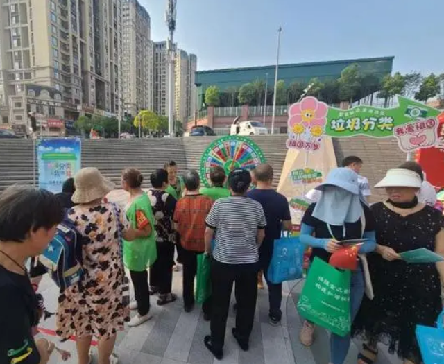 活動現(xiàn)場洋溢著歡聲笑語,節(jié)日的熱烈氛圍與垃圾分類的環(huán)保主題相得益彰。社區(qū)工作人員和志愿者們布置了多個互動區(qū)域,如垃圾分類知識展板、趣味問答游戲等,志愿者緊緊圍繞垃圾分類知識向居民群眾宣傳,并發(fā)放垃圾分類指南、垃圾分類宣傳品等內容開展。社區(qū)工作人員為居民發(fā)放垃圾分類宣傳冊和小禮品,并現(xiàn)場解說如何進行垃圾分類,分類后如何處理等垃圾分類知識。