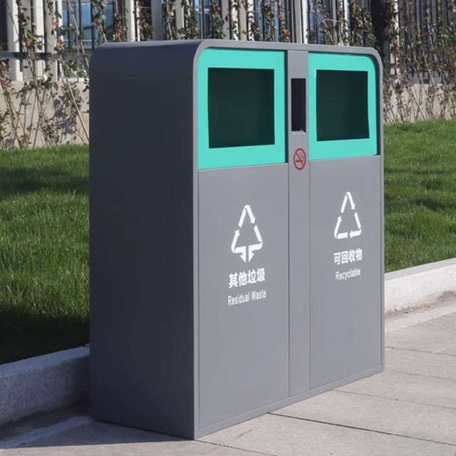 其廣泛的適用性使其成為各類戶外場所的理想選擇。在城市街道上,它為行人提供便捷的垃圾投放點,助力城市保持整潔美觀;在公園中,它與自然景觀和諧相融,引導游客養成良好的環保習慣;在學校校園內,它能培養學生的垃圾分類意識,營造整潔的校園環境;在商業廣場、景區等人員密集的場所,它能夠高效地收納垃圾,確保場所的環境衛生。