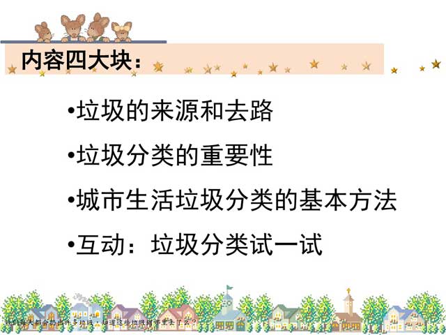 以上垃圾分類宣傳ppt內(nèi)容由分類垃圾桶網(wǎng)從網(wǎng)上收集整理(完整內(nèi)容點(diǎn)擊獲取),請(qǐng)勿作商業(yè)用途。? 生活垃圾分類知識(shí)要應(yīng)用在日常生活中,要堅(jiān)持不懈,才能讓我國(guó)的垃圾分類政策又快又好發(fā)展,當(dāng)然,如果大家能做好垃圾分類宣傳,那是更好的了。