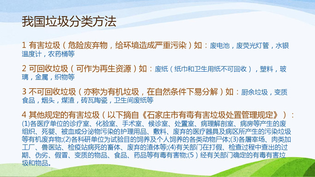 中國(guó)垃圾分類(lèi)現(xiàn)狀和建議ppt全部?jī)?nèi)容:https://wenku.baidu.com/view/a9db5ad5ac51f01dc281e53a580216fc700a5398.html?from=search