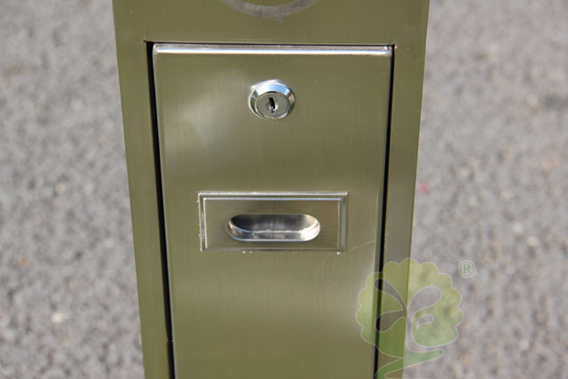 C618室外街道滅煙柱規(guī)格248*248*1175mm,呈長條傳,側(cè)面有三角鑰匙,可以打開側(cè)門,方便清理位于內(nèi)套管的煙蒂煙灰,底座分兩種,一種是室內(nèi)采用的,在底部裝有防滑墊,一種是戶外采用的,底部使用膨脹螺絲。