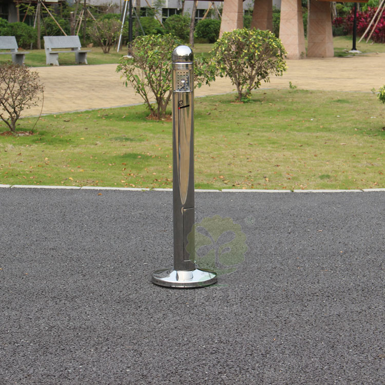 廠家定制柱式不銹鋼滅煙柱側面有三角鑰匙,可以打開側門,方便清理位于內套管的煙蒂煙灰,底座分兩種,一種是室內采用的,在底部裝有防滑墊,一種是戶外采用的,底部使用膨脹螺絲固定。