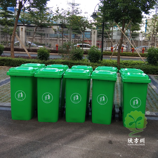 120L綠色廚余分類塑料垃圾桶 用高密度聚乙烯( HDPE )一次注模而成,絕無焊縫;塑料垃圾桶用高質量的原料,其分子排列緊密均勻,另外,原料中加入抗紫外線劑,不易褪色;塑料垃圾桶具有不易變形不易變色,耐腐蝕耐摔打,無毒性,防凍耐熱,不易破裂、使用壽命長等特點; 塑料垃圾桶采用硬塑輪轂,固體橡膠輪胎極難破損;塑料垃圾桶口邊緣特別加厚,以承受更高壓力。 提供各種顏色(藍、紅、黃、綠)的塑料垃圾桶供您選擇; 容易清洗,擦洗后塑料垃圾桶仍光潔如新; 塑料垃圾桶采用獨特的外形設計,外表美觀、大方。 塑料垃圾桶蓋可防垃圾氣味散發,更可防止蚊蟲、蒼蠅滋生,更衛生; 體積大、尖利、骯臟的垃圾/物件可隨流動塑料垃圾桶一起運走,更方便、更安全。廣泛適用于各類公共場所(小區、寫字樓、學校、市政、工廠、物業等)。