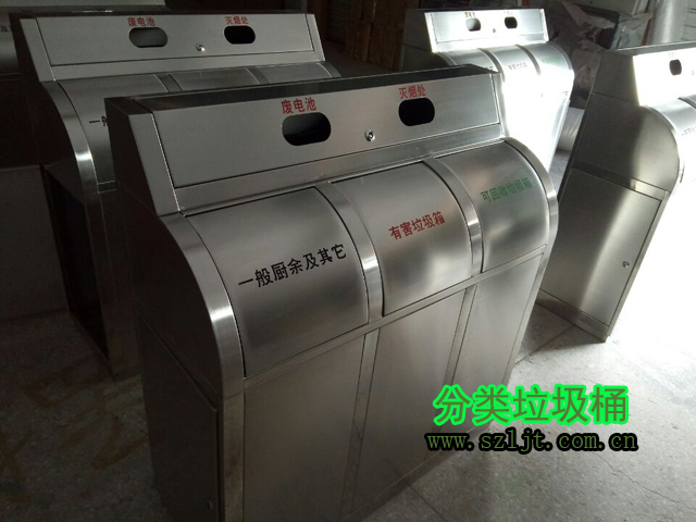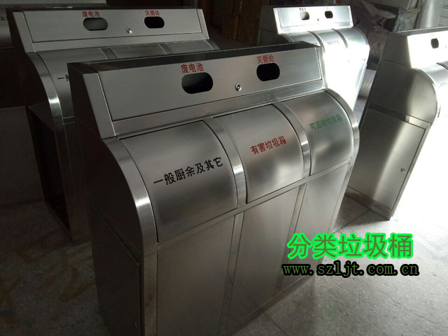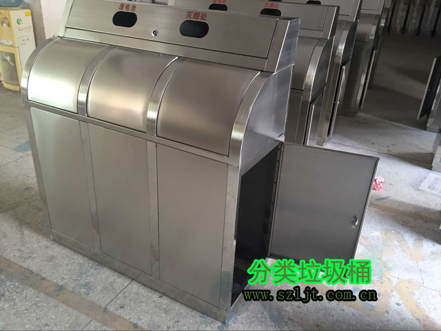 小社區(qū)物業(yè)不銹鋼分類垃圾桶型號xfz-c210,規(guī)格900*400*890。此垃圾桶各種小細節(jié)十分講究,根據小區(qū)社區(qū)這種特定環(huán)境量身定制。全桶由可回收垃圾、不可回收垃圾、廚余垃圾分類組成。里面附帶鍍鋅內膽,可從桶身兩側取出放進。桶蓋是推蓋式,上方還有煙頭、電池兩個收集盅。