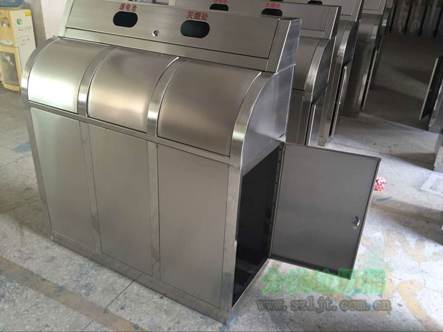 不銹鋼三分類垃圾桶工藝精湛,品質高檔,深受客戶好評。它采用優(yōu)質不銹鋼板作為原材料,制作出來的垃圾桶堅固耐用,光滑不生銹。整個垃圾桶制作非常注重人性化的小細節(jié),表角都作了折彎處理,沒有利角不割手,防止意外割傷。
