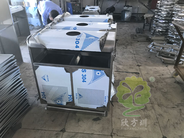 戶外方形不銹鋼環保分類垃圾桶生產過程:
