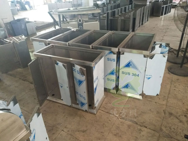 搖蓋式不銹鋼三分類垃圾桶生產過程: