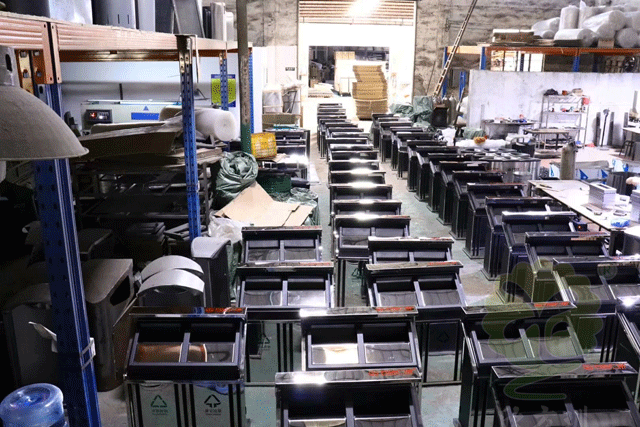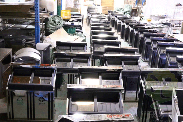 采用201#、202#、304#不銹鋼材料使用激光切割機、折彎機經過剪板、模壓、折彎、組裝、焊接,然后在表面打磨、烤漆、絲印而成。