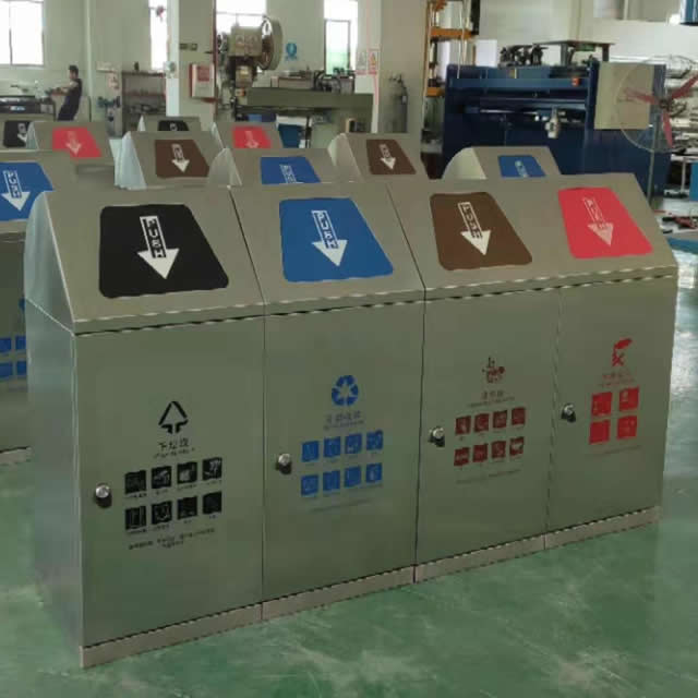 大型有蓋四分類不銹鋼垃圾桶生產過程: