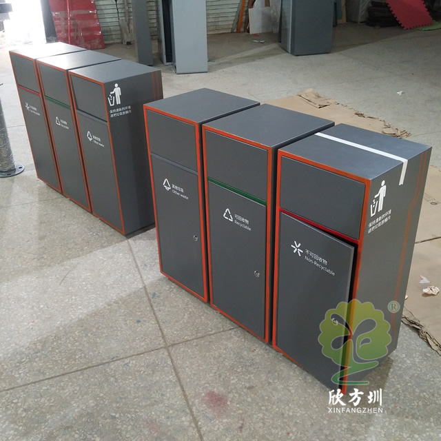 噴塑組合式不銹鋼分類垃圾箱采用201#,202#,304#優質不銹鋼材料模壓成型,堅固耐用,不易破損;耐火安全,抗高低溫,適合各種惡劣氣候條件;金屬亮澤,高雅美觀,廣泛適用于各種機場、商場高檔場所;內外表面光潔,減少垃圾殘留,易于清潔;配置鍍鋅板內桶,便于垃圾清倒;激光切割開料,尺寸精準,投口無縫焊接成型,打磨拋光處理圓滑不割手。