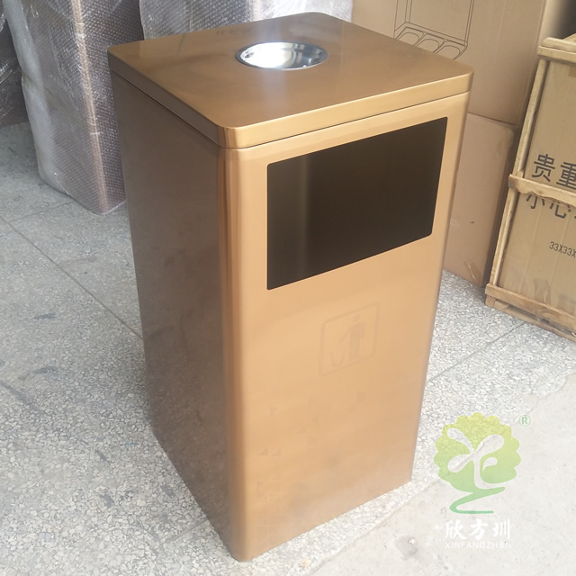 腐刻電鍍土豪金不銹鋼果皮箱是欣方圳設(shè)計(jì)生產(chǎn)的一款經(jīng)典熱銷垃圾桶,這款垃圾桶雖然使用不銹鋼板制作而成,但是外形采用了電鍍土豪金設(shè)計(jì),使其看起來有一股自然古典氣質(zhì),特別適合各種歷史景區(qū)、戶外公園、別墅小區(qū)、學(xué)校廣場等場景使用。這款垃圾桶外表經(jīng)過防腐工藝處理,防水防腐蝕、經(jīng)久耐用、工藝精湛、物美價(jià)廉。如果你對這款垃圾桶感興趣,請直接聯(lián)系我們報(bào)價(jià)。
