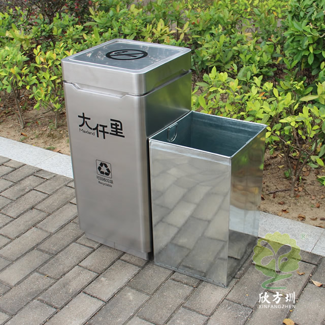 室內搖擺蓋組合式不銹鋼分類垃圾桶是欣方圳設計生產的一款經典熱銷垃圾桶,這款垃圾桶雖然使用不銹鋼制作而成,但是外形采用了仿木設計,使其看起來有一股自然不銹鋼本色氣質,特別適合各種歷史景區、戶外公園、別墅小區、學校廣場等場景使用。這款不銹鋼垃圾桶外表經過防腐工藝處理,防水防腐蝕、經久耐用、工藝精湛、物美價廉。如果你對這款垃圾桶感興趣,請直接聯系我們報價。