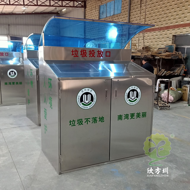 社區帶擋雨棚不銹鋼分類垃圾桶