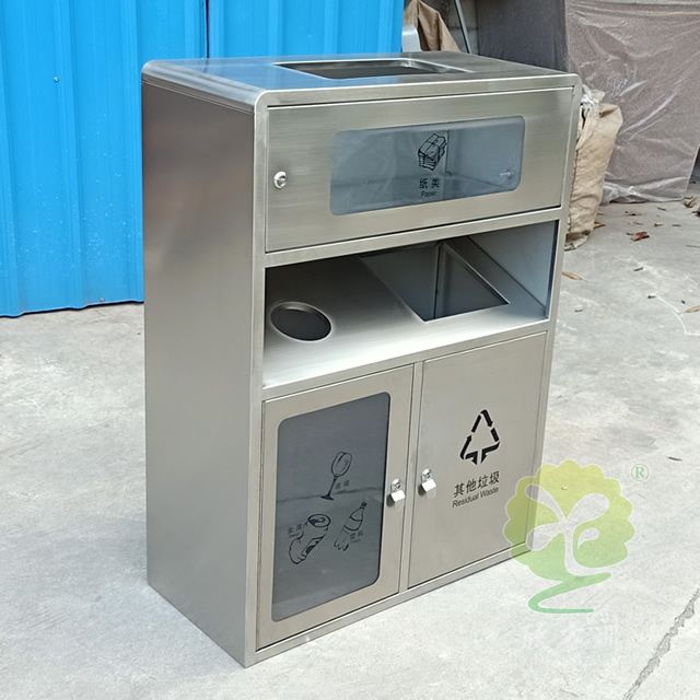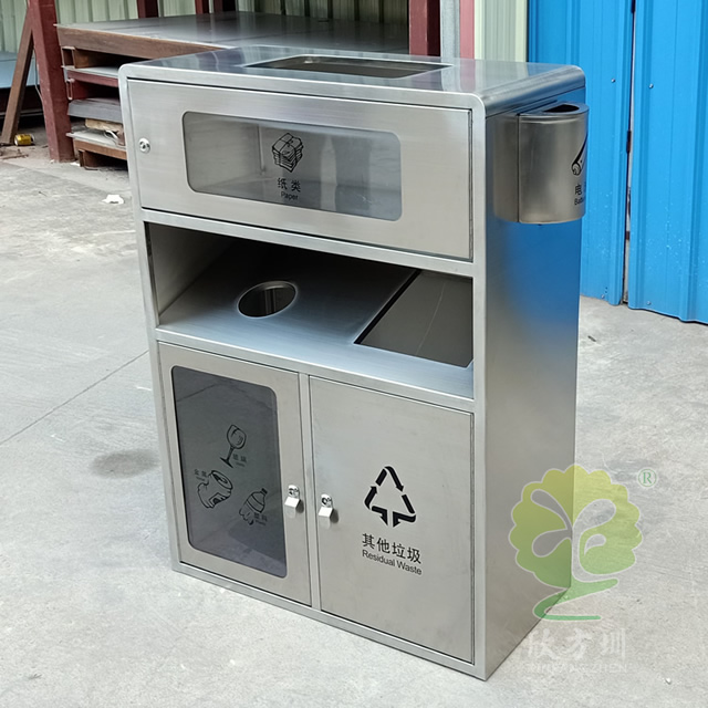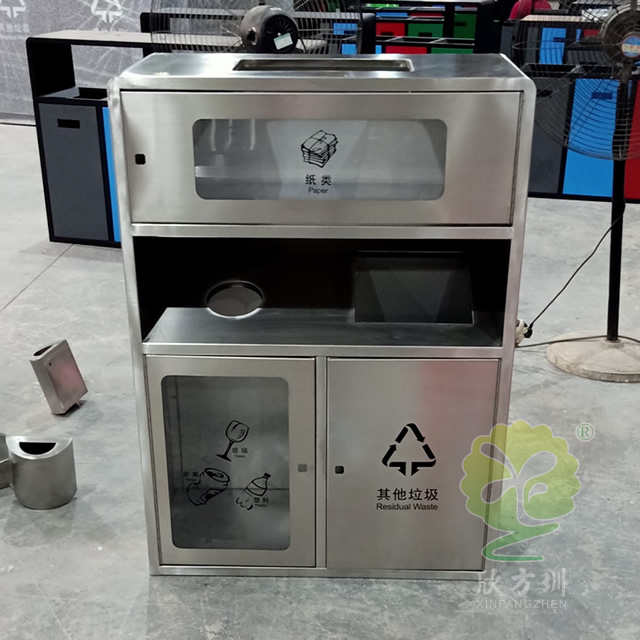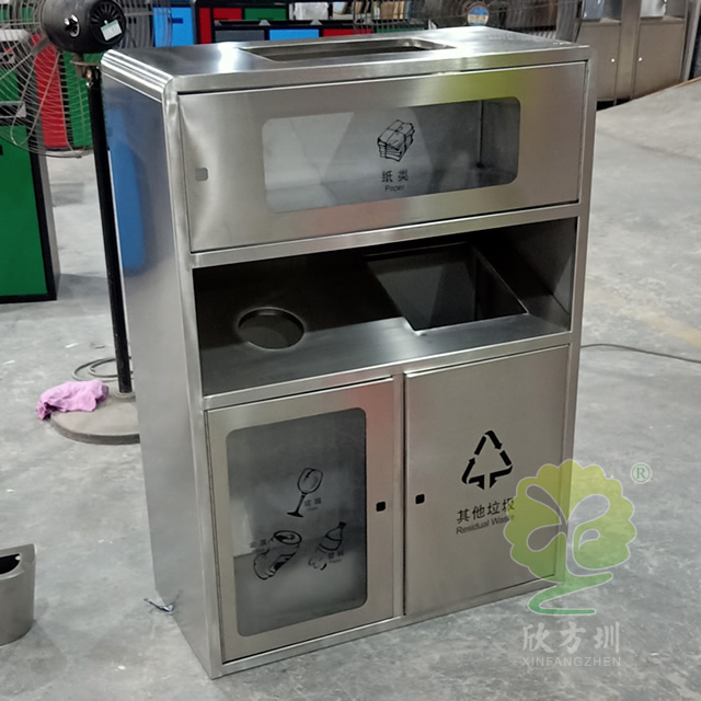 透明不銹鋼分類垃圾桶采用201#,202#,304#優質不銹鋼材料模壓成型,堅固耐用,不易破損;耐火安全,抗高低溫,適合各種惡劣氣候條件;金屬亮澤,高雅美觀,廣泛適用于各種機場、商場高檔場所;內外表面光潔,減少垃圾殘留,易于清潔;配置鍍鋅板內桶,便于垃圾清倒;激光切割開料,尺寸精準,投口無縫焊接成型,打磨拋光處理圓滑不割手,欣方圳不銹鋼分類垃圾桶制作師傅有著多年經驗的熟手,每一道環節工藝成熟,質量可靠,確??蛻羧缙诮桓厄炇?。