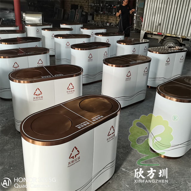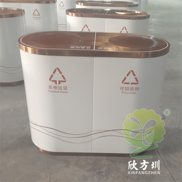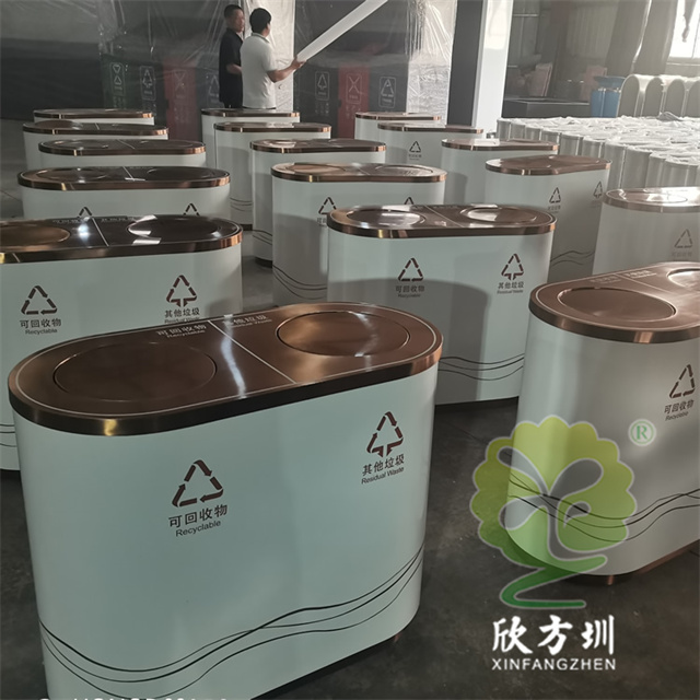 商用電鍍不銹鋼分類垃圾桶是欣方圳設計生產的一款經典熱銷垃圾桶,這款垃圾桶雖然使用不喜歡制作而成,但是外形采用了橢圓形分類電鍍制作,使其看起來有一股自然大方氣質,特別適合各種購物商城、酒店賓館、店鋪店面、高鐵站地鐵站等場景使用。這款垃圾桶外表經過防腐工藝處理,防水防腐蝕、經久耐用、工藝精湛、物美價廉。如果你對這款垃圾桶感興趣,請直接聯系我們報價。