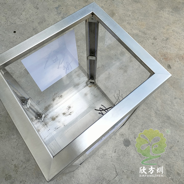使用不銹鋼板剪切、折彎、組裝、焊接、打磨而成 |