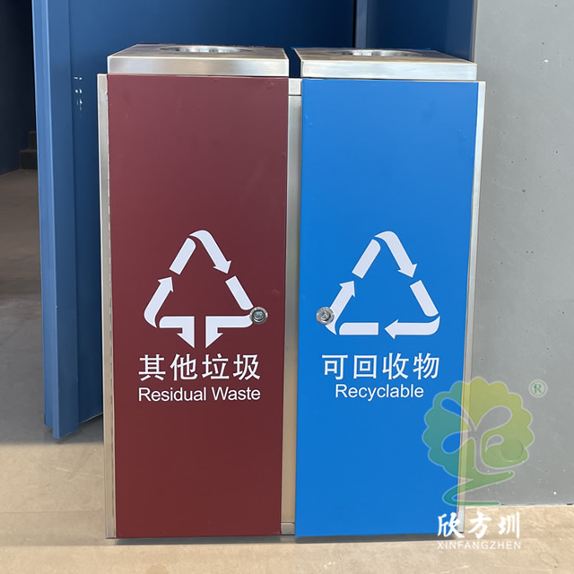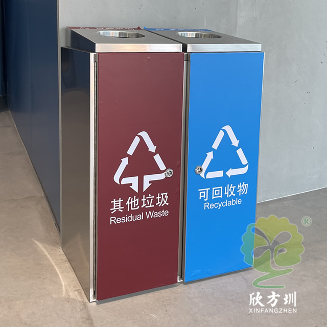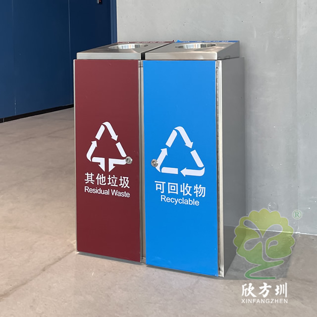 室內直投口方形連體不銹鋼分類垃圾桶產品詳情: |