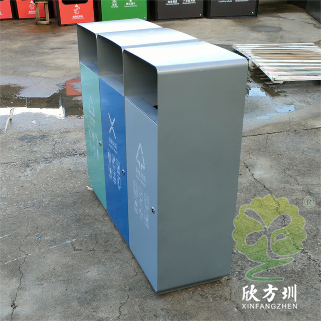 室外加厚組合三色不銹鋼分類果皮箱