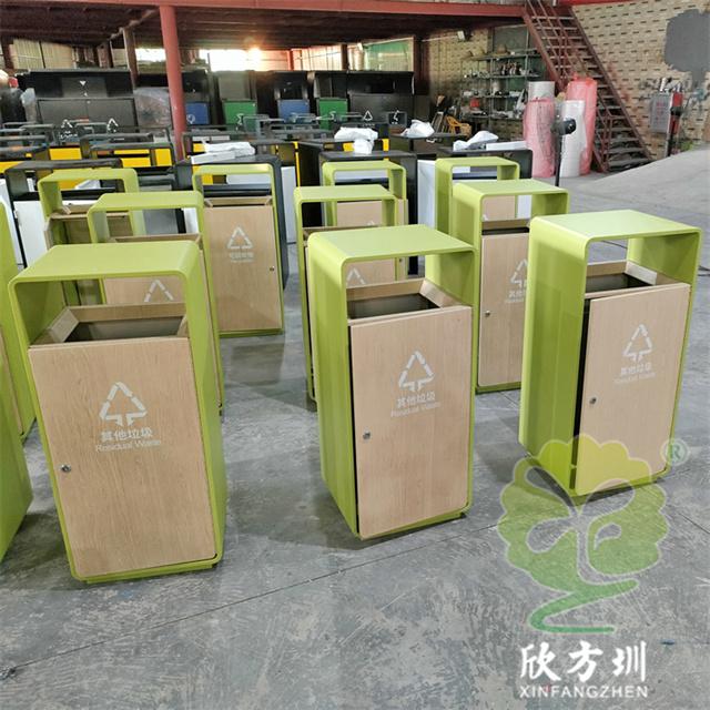 室內(nèi)戶外轉(zhuǎn)木紋方形不銹鋼垃圾桶采用了304不銹鋼板制造而成,方形雙面投口單筒設(shè)計,桶身框架采用了淡綠色噴涂噴塑上色,框架板材雙層折彎更佳耐用,桶身雙面門板采用了轉(zhuǎn)木紋工藝制作,內(nèi)筒可以使用三角鑰匙打開門板取出內(nèi)置的內(nèi)筒,正反面絲網(wǎng)印刷了白色的其他垃圾最新國標(biāo),可以定制雙分類或者多分類的桶。