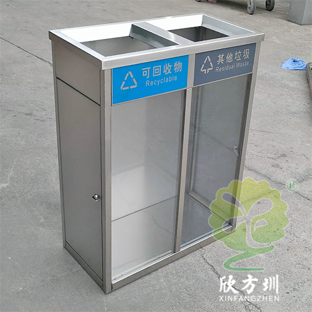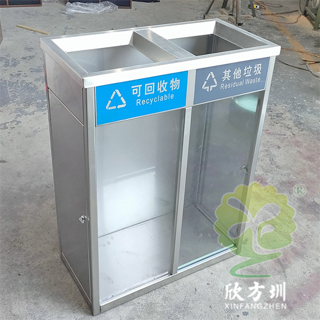 室內兩連體防爆透明不銹鋼分類垃圾桶產品詳情: |