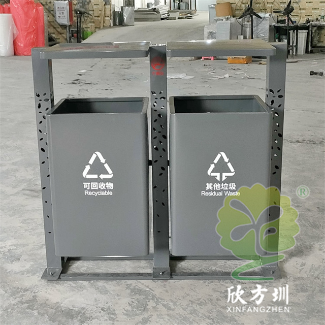 廣東惠州景區鏤空立柱不銹鋼分類垃圾桶整體1.0mm厚噴塑外筒,方形任意組合式多分類設計,可以選擇用不銹鋼板制作桶身,桶身表面噴涂噴塑了米白色,背后可使用三角鑰匙開始開門取出內筒,內筒鍍鋅板0.4mm厚,正面絲印了最新國標分類標識,有現成的網版可以免費絲印分類標識。