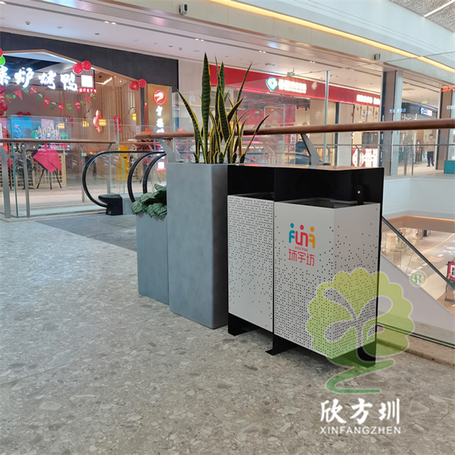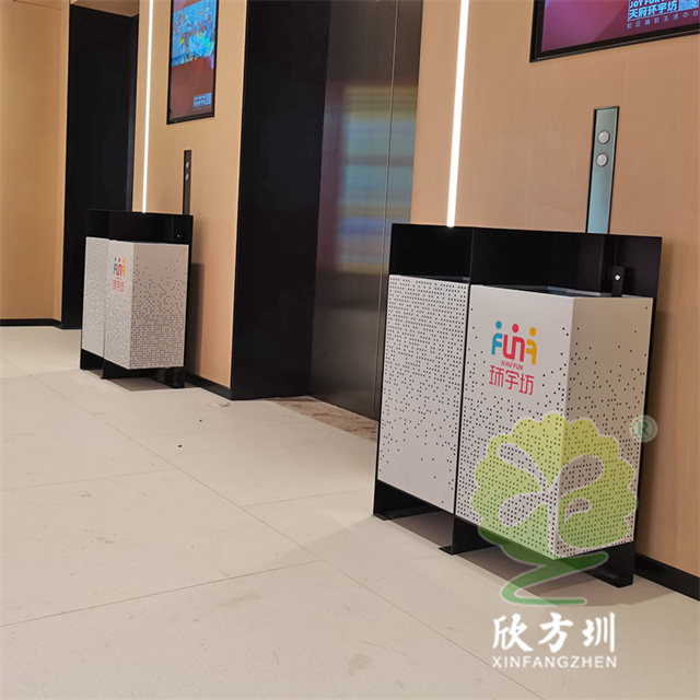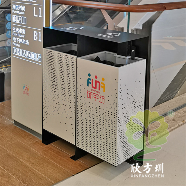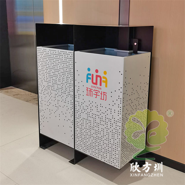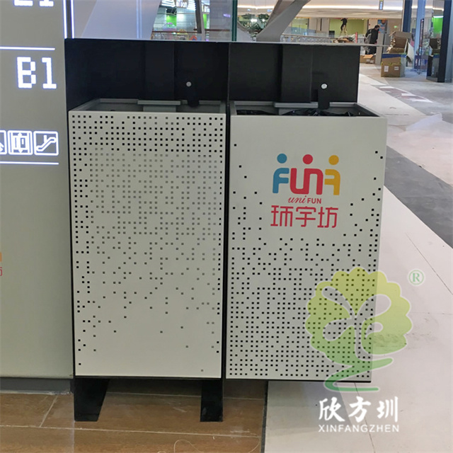 四川商場鏤空加厚不銹鋼分類垃圾桶可以選擇用鍍鋅板、冷軋鋼板或者不銹鋼板制造,這款垃圾桶框架比較厚實能夠防止割到手,表面噴涂噴塑俗稱噴粉,外部框架噴塑黑色箱體噴塑淺灰色,箱體圓點鏤空,這款垃圾桶是一家商場定制了兩款,一款用于商場室內(nèi)一款用于戶外的廣場,桶身正反面絲印的企業(yè)的分類標識。