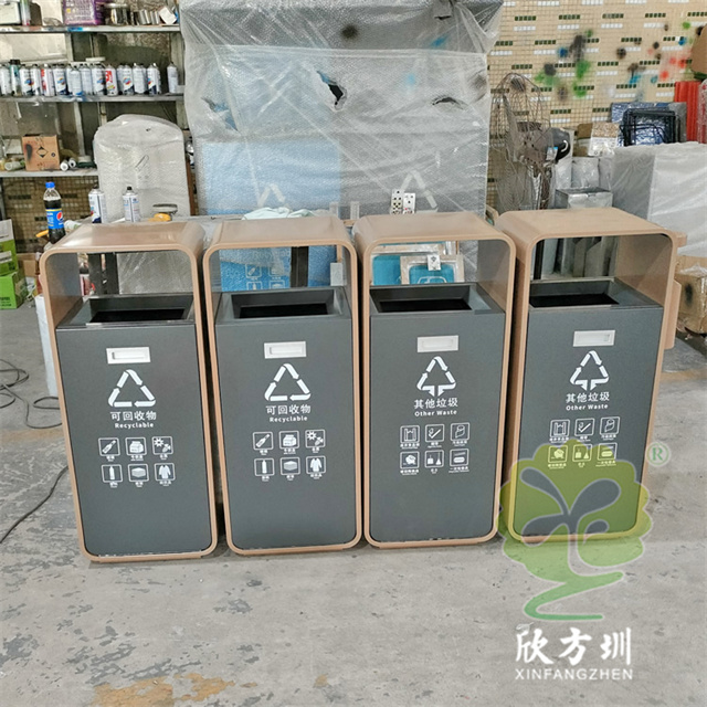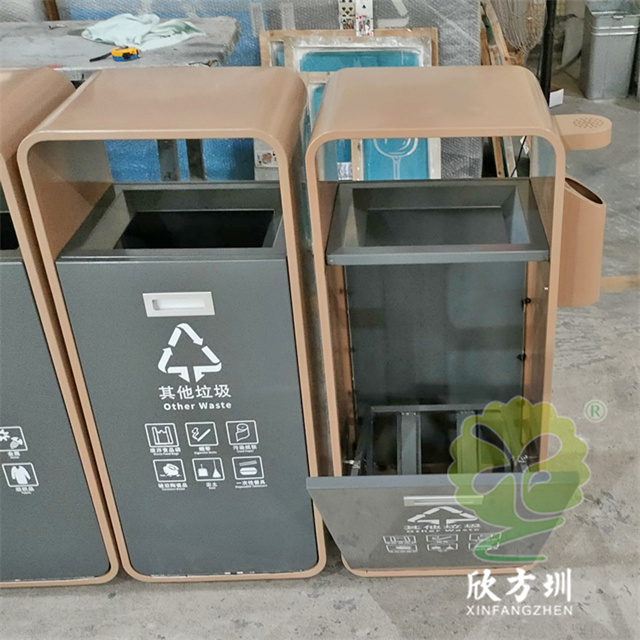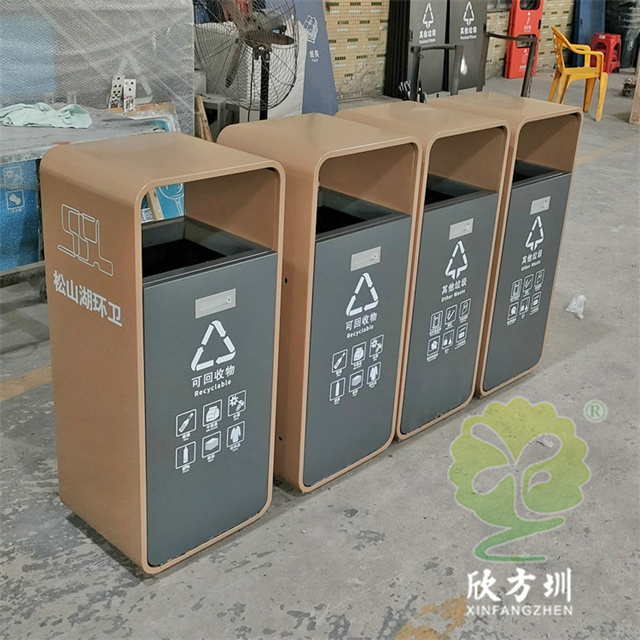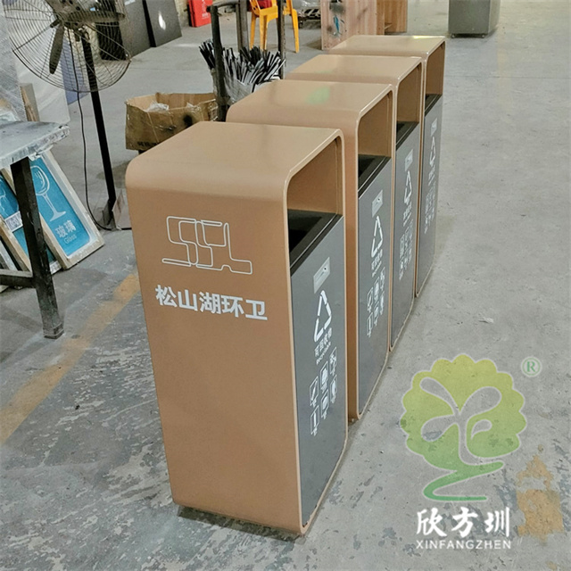 廣東松山湖環(huán)衛(wèi)不銹鋼分類垃圾桶外筒201不銹鋼1.2mm電鍍,內(nèi)部噴粉烤漆,可以定做尺寸跟顏色,翻到方便清理桶內(nèi)廢物,可以定制絲網(wǎng)印刷最新國標(biāo)分類標(biāo)識和企業(yè)logo,側(cè)面有一個(gè)煙灰盅,4個(gè)桶內(nèi)部通過螺絲連接。