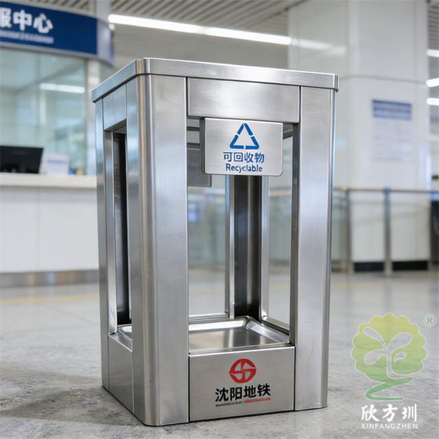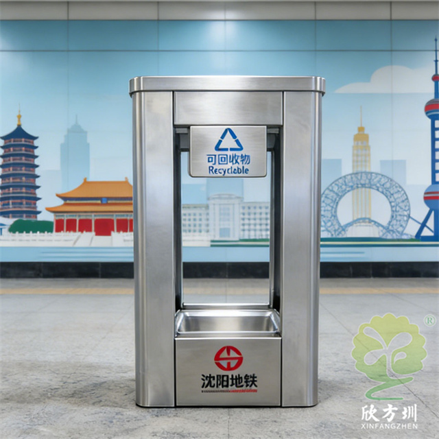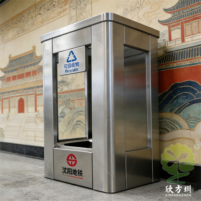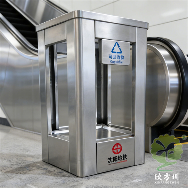 沈陽地鐵站方形透明不銹鋼垃圾桶