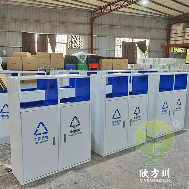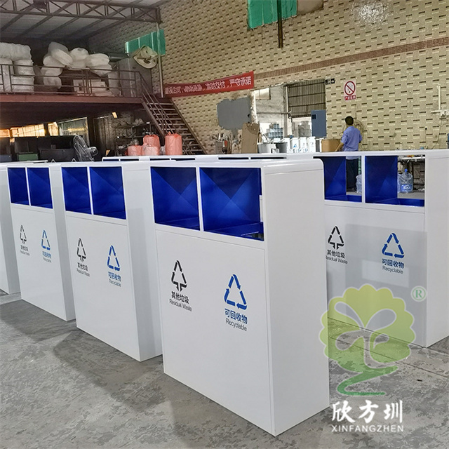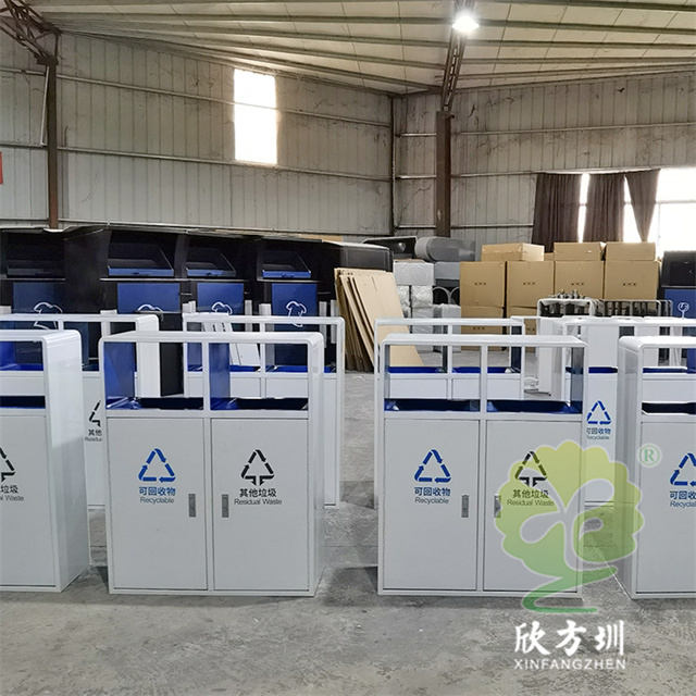 戶外方形烤漆白色鍍鋅板分類垃圾桶
