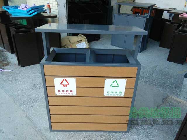 廠家定制鋼木分類垃圾桶長900mm,寬400mm,高950mm,桶身采用優質進口防腐木、進口山樟木或水曲柳制作,可抑制生物、微生物的寄生、繁殖與侵蝕,延長木材在戶外環境中的使用壽命。表面經過除蟲,防蟻,防腐,烘干等專業處理后加工成型,經久耐用,防腐美觀。桶蓋/內膽采用FRP玻璃鋼材料制造,具有防腐、防生銹、易清潔等特點。底座采用玻璃鋼纖維制作,從根本上解決了防腐、防盜、生銹的問題,產品在戶外的使用壽命大大增強。此款垃圾桶無論是從外觀,性能還是環保方面來講都十分優越,尤其適合擺放在花園,公園,小區,學校,街道,游樂園等場所,備受客戶青睞。