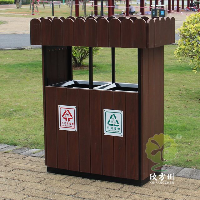 戶外防腐木帶花箱分類垃圾桶,人們對生活環境的衛生要求也越來越高,沒有人可以容忍自己家園周圍看上去臟、亂、差。整治臟、亂、差,建設衛生文明居住環境,是大部分城市的基本目標,居住環境的衛生整治離不開垃圾桶的幫助,甚至垃圾桶本身就能成為城市文明的一道亮麗風景線。沒有人愿意親近一個看上去布滿污漬,臟兮兮,充滿細菌的垃圾桶,而一個看上去干凈、衛生、美觀的垃圾桶,除了人們更愿意往里面投垃圾外,本身就能起到裝飾美化的作用。