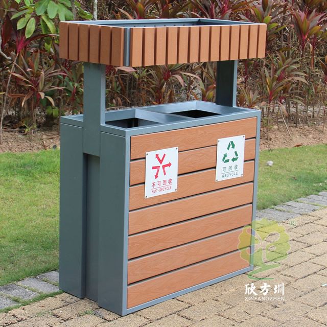 ?戶外精品花箱分類鋼木垃圾桶型號:JP19-2,規格:810*380*1030mm。采用精挑細選的優質進口山樟木、防腐木,經過除蟲、防蟻、防腐、烘干處理后加工成型,桶身鋼制結構酸洗磷化表面采用優質靜電噴粉處理,形成可靠防護層,使其戶外使用具有耐候持久,抗腐蝕不生銹。確保產品歷久彌新,內桶可選用優質鍍鋅板制作。具有美麗的外觀,別致的造型,高檔的形象,鋼木垃圾桶適用于高檔花園小區、公園、景區、園林、學校等場所。起到保護公共環境的作用,為城市的干凈整潔做出了卓越的貢獻。