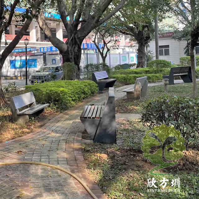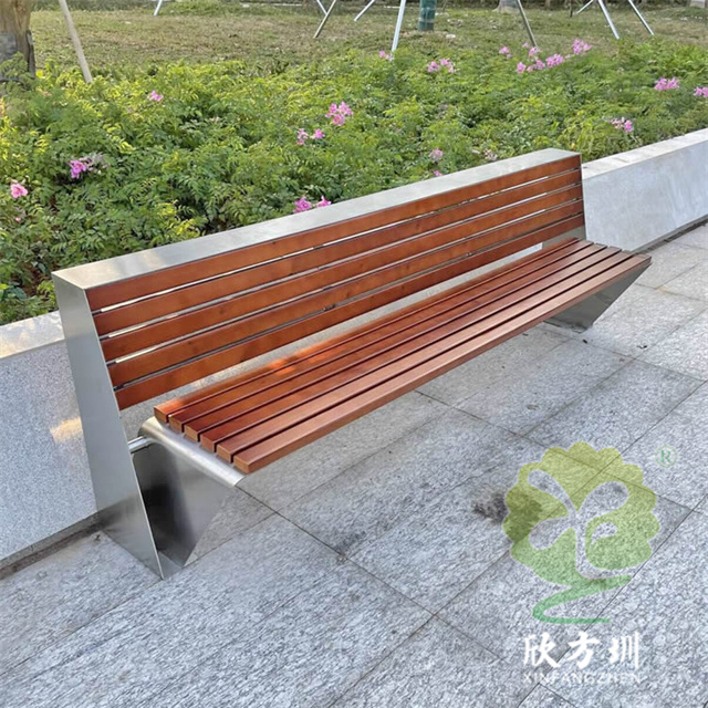 不銹鋼座椅公園椅:整體外觀和普通的公園椅座椅一樣,但是該公園椅座椅的椅條由防腐木換成了等長的不銹鋼鋼柱,帶有靠背設計,整體框架采用一體化焊接技術,美觀又耐用。